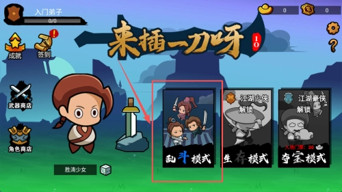 3、进入“入门弟子”界面后选择“生存模式”,建议先解锁“百炼宝刀”来提升伤害,之后再进入关卡。
