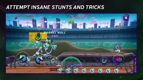 部分模式融入了竞速玩法,玩家需要在规定时间内到达终点,过程中可以通过破坏场景物体或完成特技动作来积累积分。最终的积分排名会对关卡评价产生影响,这也提升了玩家重复挑战的动力。