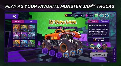 卡车拥有速度、加速、悬挂等基础属性,玩家能够借助关卡奖励或者内购来升级部件。各类卡车的特性有着明显差异(像越野型的擅长爬坡、平衡型的适合特技),需要依据关卡的需求来挑选车辆。