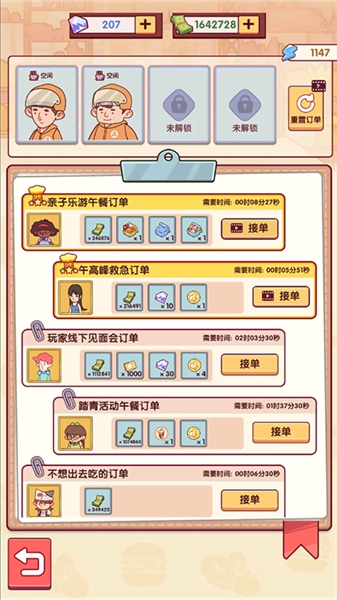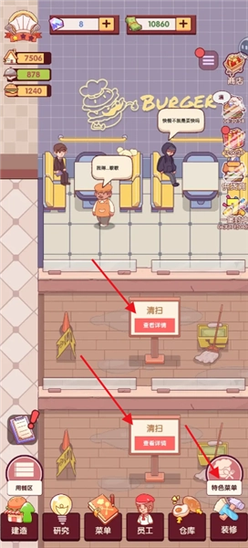 3.可以根据任务进行打扫、研究菜单等等。