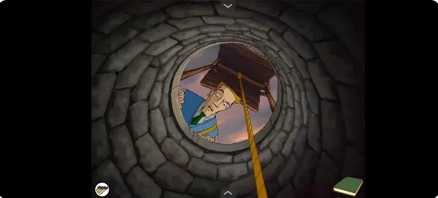 3.退出当前区域,前往右侧的井边,拉动左上方的把手,你会看到绳子断裂了。
