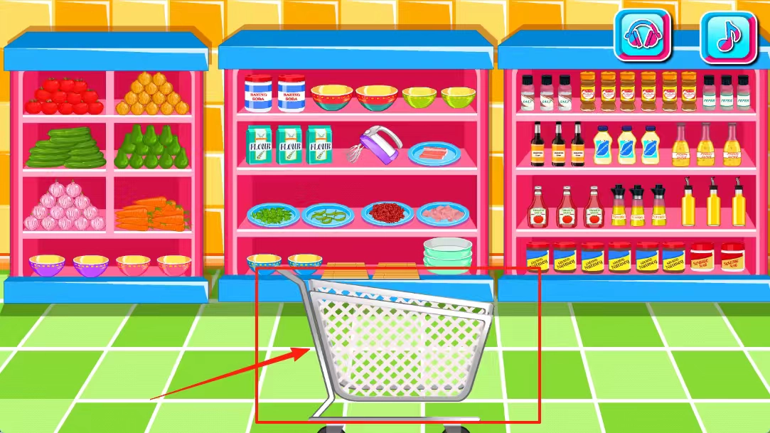 3、进入虚拟超市,依据食谱清单挑选食材并放入购物篮,待集齐所有所需原料后,即可开启烹饪流程。