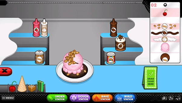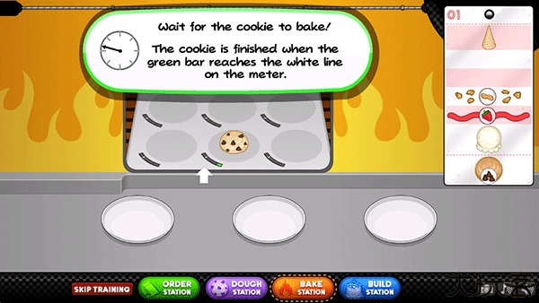 3、接下来就正式开启饼干制作流程啦,点击“dough station”——这位顾客想要的是传统饼干,所以要选择装有传统面团的垃圾桶。