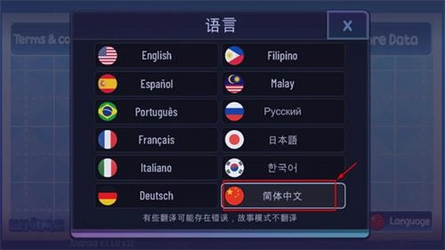 3、点击屏幕即可开始游戏,进入游戏界面后,你会发现可以将语言设置调整为简体中文。