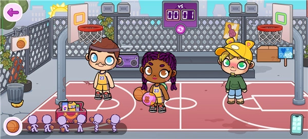 5、返回主页面后,能够切换至其他场景,例如可以让角色进行打篮球或其他类型的运动。