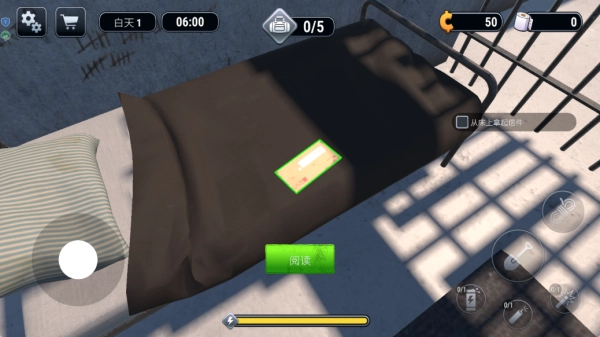 1、首先要打开床上的信件,通过阅读信件来获得越狱线索,快速展开越狱计划。