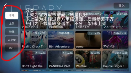 未上架,未经过/通过审核上架谱面,质量参差不齐