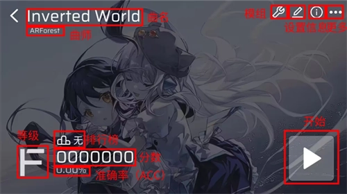 在曲目选择页面点击想要体验的歌曲,就能进入实际的游戏环节,此时你会看到如下相关内容: