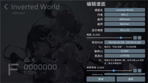 当你点击那个形似铅笔的图标后,界面右侧会弹出一个用于调整谱面参数的面板。在这里,你能够对谱面的难度数值、画面的宽高比例以及提示信息等选项进行自定义设置,建议根据个人需求完成调整后,别忘了对修改内容进行保存操作。