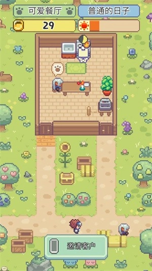 菜品制作完成后,点击“开店铺”按钮即可开始营业;点击下方的“邀请客户”选项,就能招募客人到店。