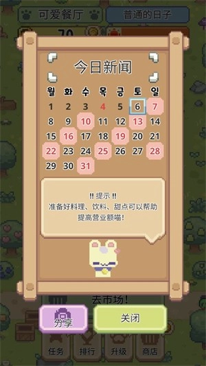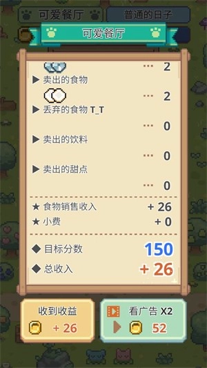 当所有菜品都售罄后,一天的经营就可以结束了,点击“取得收益”按钮就能获得金币。
