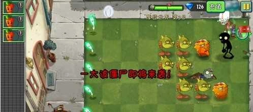 这个关卡会出现四阶僵尸,玩家们得尽量挑选合适的植物。我选了豌豆射手搭配火炬树桩,不过光靠这些还不够对付僵尸,还得带上坚果来阻挡它们,要是情况紧急,用岩浆番石榴救场也可以!