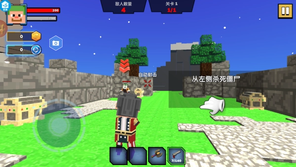 进入关卡后,通过虚拟摇杆控制角色移动到箭头所指的位置,认清并完成当前的目标。