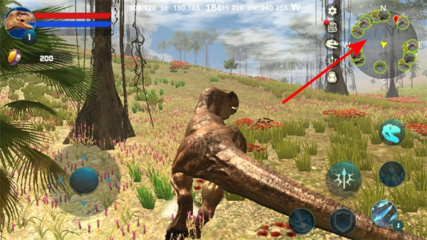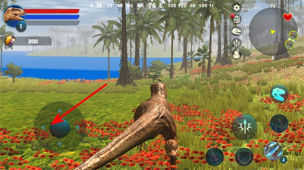你可以通过左侧的虚拟摇杆来控制恐龙的移动,这一操作是恐龙在场景里进行探索、觅食和战斗的基础,帮助它穿梭于恐龙世界之中。