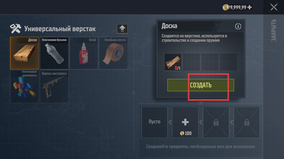 在万能工作台上加工木板,以此积攒建造建筑、打造武器所需的材料,从而增强自身的生存能力。