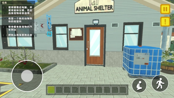 经营一家宠物救助站,达成既定目标任务,需用按键靠近电脑,再点击鼠标左键,接着选择宠物收容选项,将动物收容至你的救助站。