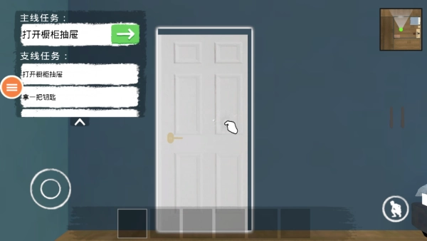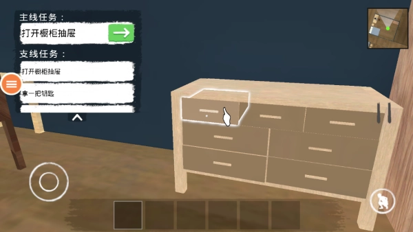 现在你在自己的房间里,留意画面右上角的小地图,就能查看自身位置。画面左侧会显示任务提示。