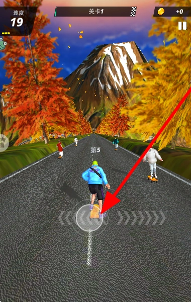 手指长按可实现加速,以便及时利用赛道上的道具,使滑板瞬间获得更快速度,轻松超越其他选手,从而有效提高比赛排名。