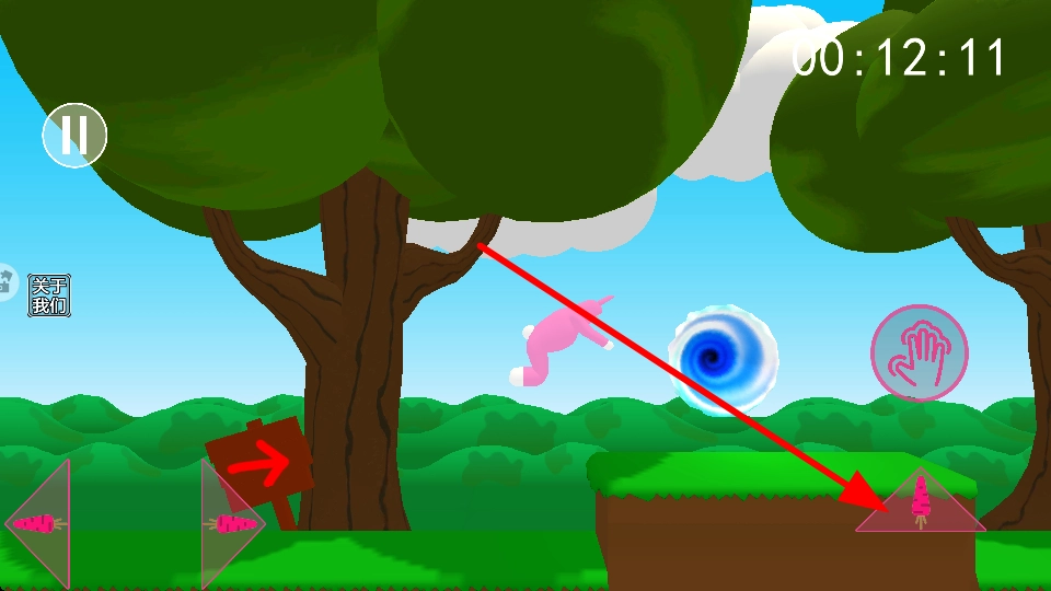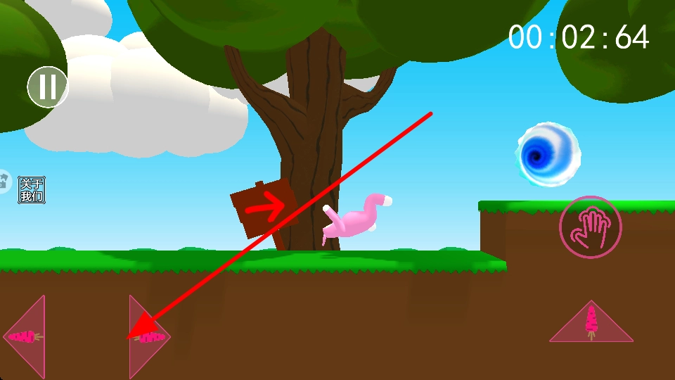 玩家能够点击跳跃按钮,使萌兔高高跳起,轻松越过沟壑之类的障碍,迅速接近传送门。