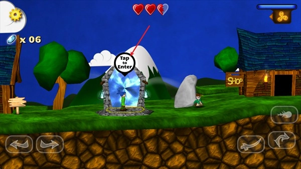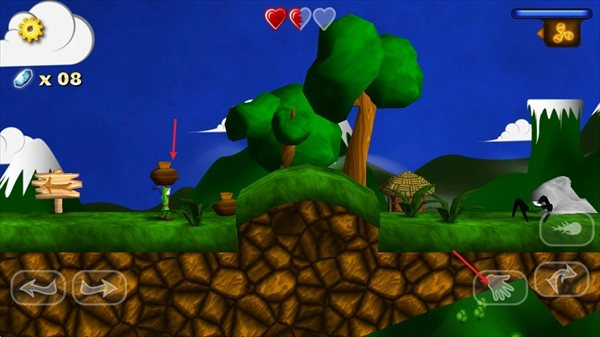 接着按照地图的指引,我们进入了关卡内部,左边的箭头用来控制移动,右边的箭头用来控制跳跃,长按的话能够跳得更高。