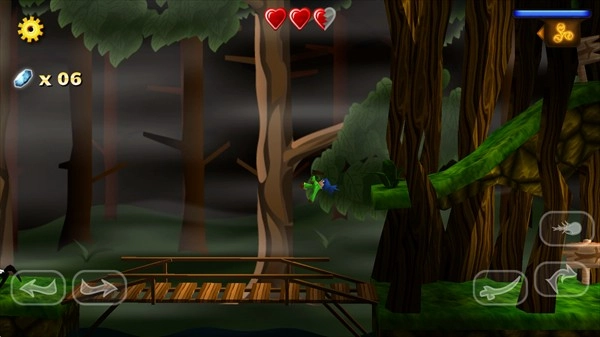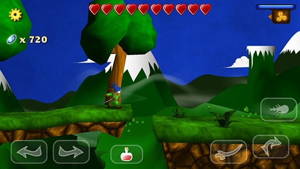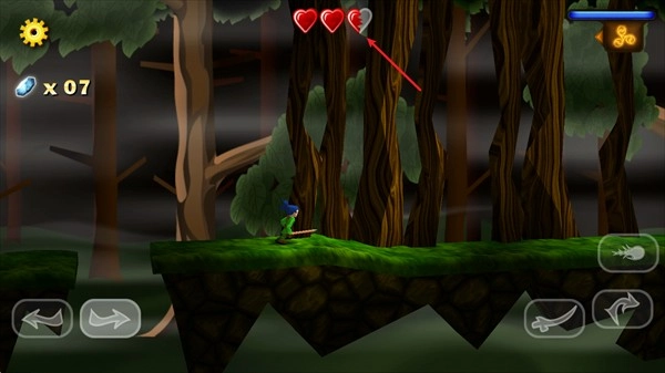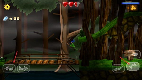 游戏里设置了虚拟按键,就像上面图片左下角有左右两个按键那样,玩家只需点击就能完成对应的动作。连续点击两次方向键,就能让角色进入奔跑状态。