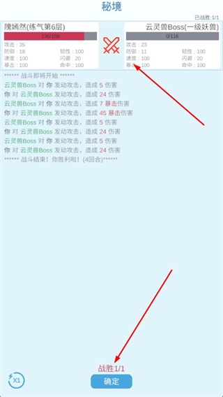 在秘境里会碰到BOSS,展开战斗,获胜后点击确定就能继续探索啦。