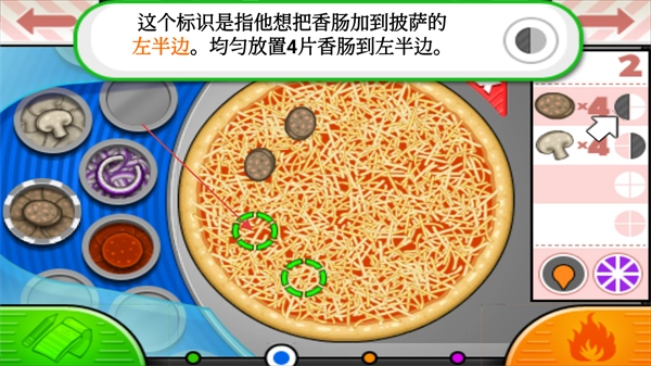 依据顾客所提供的标识,明确披萨配料的摆放方式与数量。