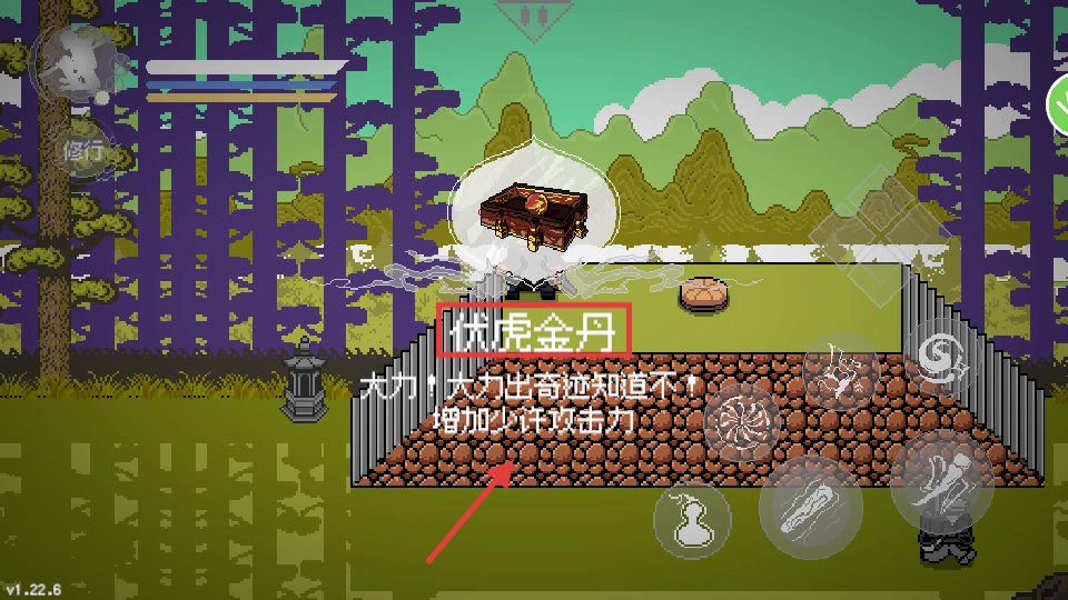 开启【宝箱】可获取【伏虎金丹】,使用该道具能增加少量攻击力,从而提升输出能力,为战斗提供助力。