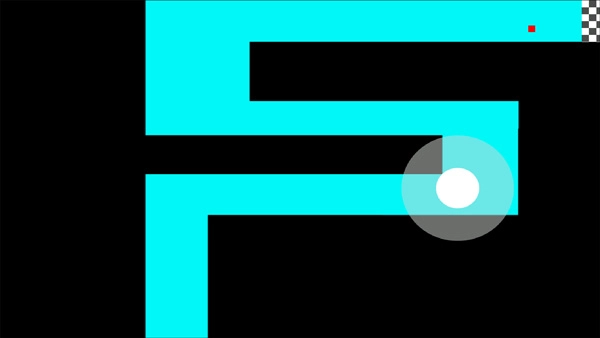 游戏的主角是一个小点,玩家需要操控它避开两侧的墙壁,成功抵达终点就算获胜。