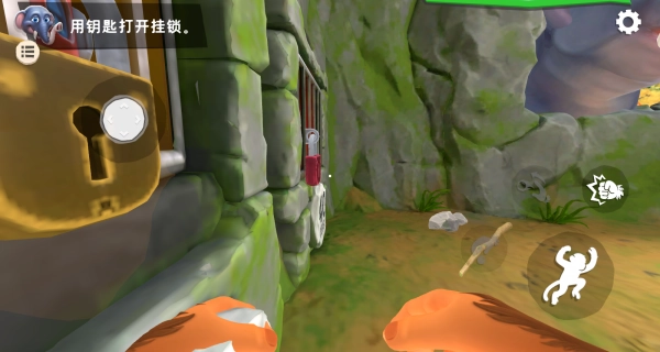 通过虚拟摇杆精准操控猴子移动至笼门位置,待钥匙图标亮起时点击使用,就能顺利打开笼锁,让猴子重获自由。