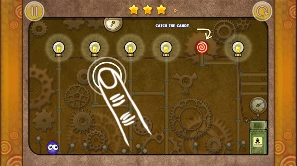 每个关卡的糖果布局都独具匠心,玩家得不断摸索新策略才能通关,进而解锁各种趣味关卡。在帮毛茸茸的小球获取糖果时,地图里藏着的星星同样是重要元素。