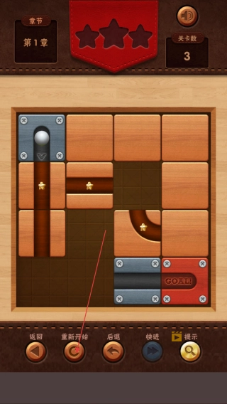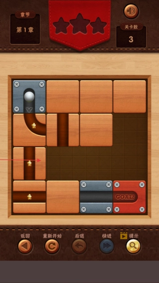 滑动屏幕移动木块,为铁球开辟路径,收集星星。