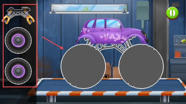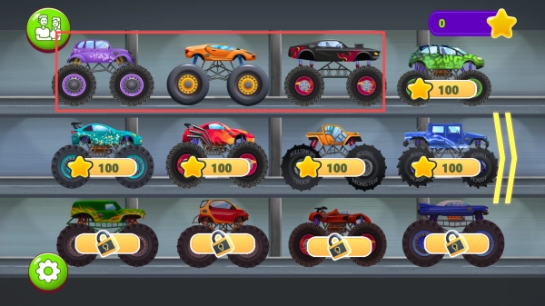 进入车库界面,挑选一辆怪兽卡车,开启组装与驾驶挑战,为闯关做好准备。