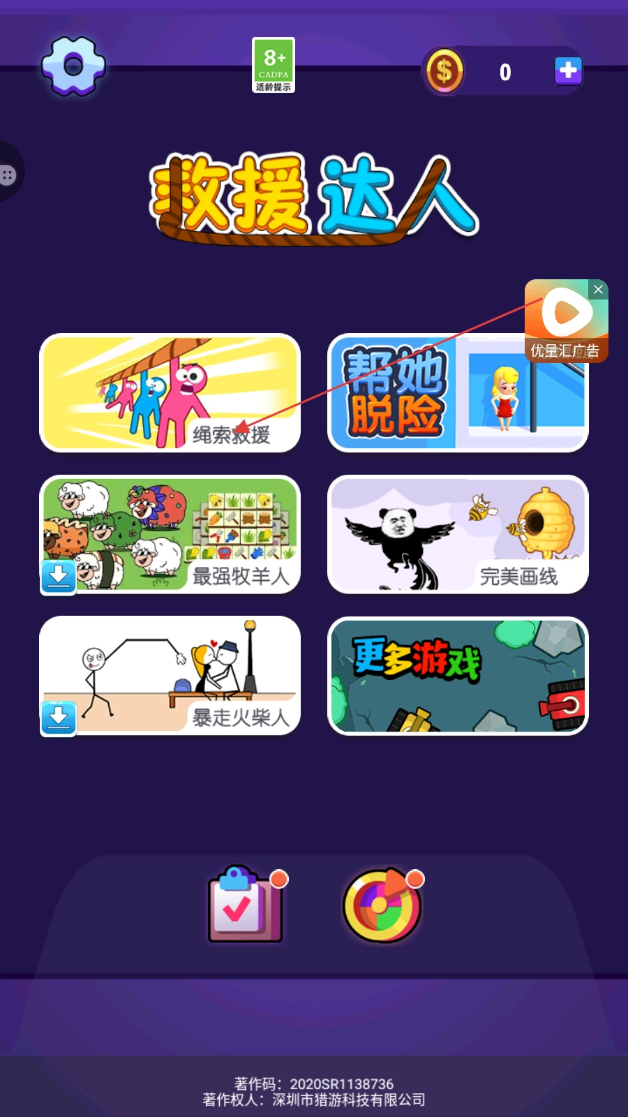 打开游戏救援达人,点击【绳索救援】。