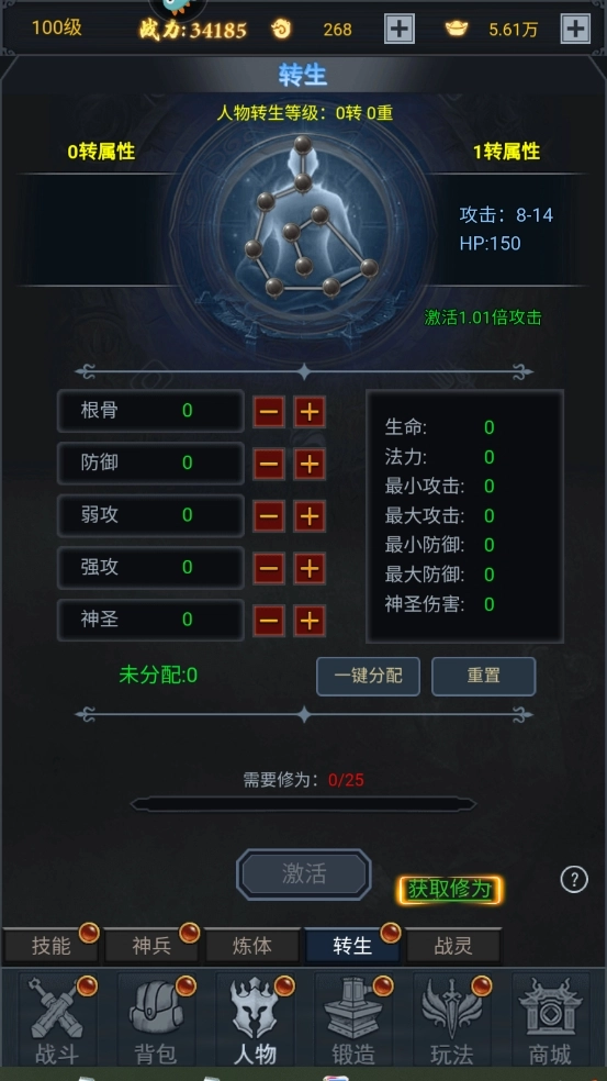 1、转生是游戏的核心系统,影响功能开启,以及影响部分BOSS地图的进入。