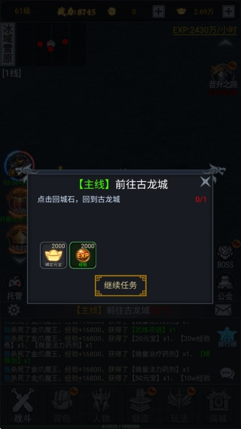 3、游戏中做主线任务是升级以及获取装备最便捷的一种方式