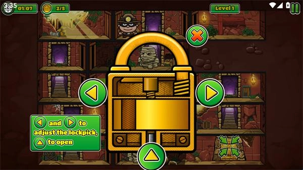 《神偷鲍勃5》是一款相当出色的冒险类游戏,作为该系列的第五部作品,它延续了前几部的经典风格。游戏里,玩家将化身为大家熟悉的神偷鲍勃,潜入设有各类机关的房间,避开巡逻的士兵与形形色色的监控眼线,盗取珍贵宝物。游戏关卡数量丰富,每一关都有着不同的挑战内容,玩家需要找到关键道具,才能顺利完成任务并逃脱。