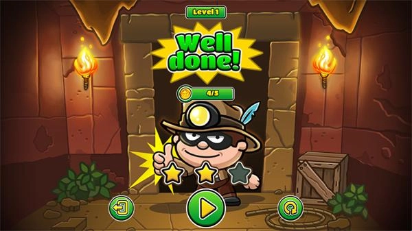 关卡通关后,鲍勃收集到的金币数量将决定该关卡最终能获得几颗星的评价。
