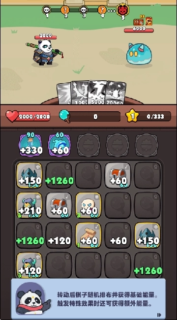 2、转盘停止后棋子将随机排列并生成基础能量值,触发特殊效果时可获得额外能量加成。