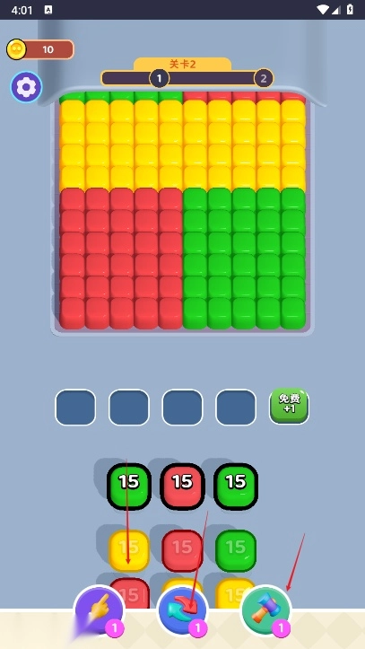 使用时机选择:依据关卡内的实际状况,恰当挑选使用道具的时机。要是上方堆积的砖块颜色杂乱,没办法快速找到消除的路径,就可以运用“全局扫描”道具,它能够立刻标记出所有能消除的同色砖块组合,帮助你迅速制定消除策略。当碰到某个关键的同色方块,不过它的周围被其他颜色的方块紧紧包围,难以直接射击打中的时候,“穿墙子弹”道具就能够发挥作用了,这个道具可以让子弹穿透障碍物,准确击中目标方块。