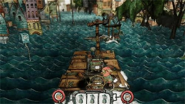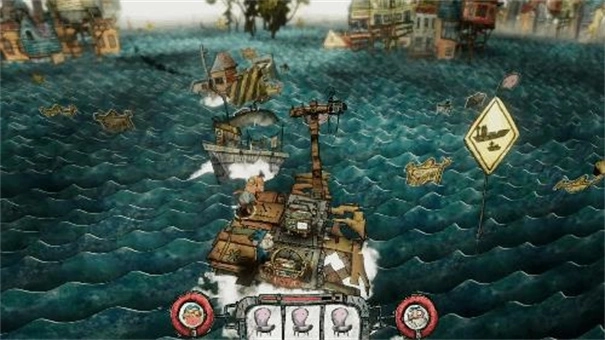 尽管地图在不断变动,但作为游戏人物我们的主要活动范围便是一艘7格小船,有控制船体方向的罗盘,以及给小船提供燃料动力的引擎。船身不可以扩建,需要做的也就是修复破损船体,以及开船了。