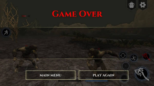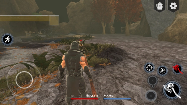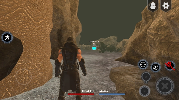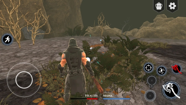 2、游戏内界面如图所示,屏幕左侧区域用于操控角色移动,右侧区域则分布着攻击、闪避、瞄准等功能键位,界面下方会显示角色的生命值与魔法值状态。