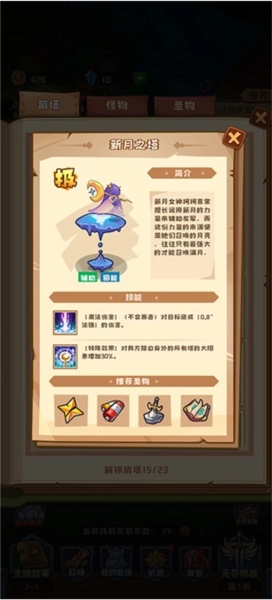 装备选择:星星,电池,剩下的放一些光环装就行。新月之塔是纯辅助,所以保证生存能力就行,副词条有生命尽量生命,没有的话就给一些法强之类的也能用。