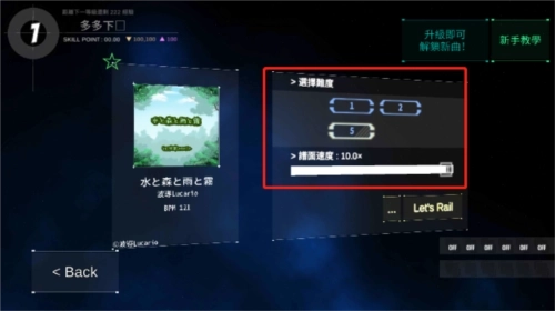 像长按与点触重叠这类情况,玩家还能轻松完成一些花哨操作。稍有遗憾的是,几乎所有谱面都以多指操作作为设计标准,就连部分5级曲目也存在多押段落。好在游戏的判定机制十分宽松,即便是用拇指或二指操作的玩家,也能尝试挑战那些高难度的多押部分。
