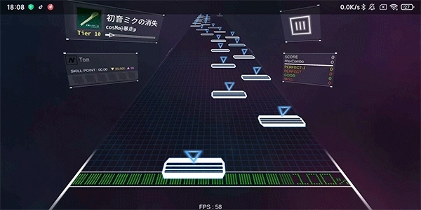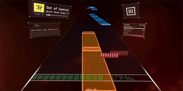 ③过早按下按键不会被判定为miss,只要成功按下,最低评级就是good,这种情况下combo不会中断,但会扣除少量血量。而当打出perfect评级时,血量会得到回复。