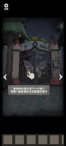 9、在木马旁获取提示“极左之地暗之魔盒”,再次尝试时持续向左探索,会得到提示“最黑的路通向光明”以及一张提示图——黑色月亮的右下方有个图案,而在探索尽头处能找到阴之花与暗之魔盒。