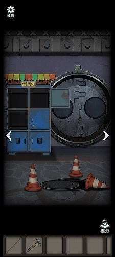 机器人从左侧纸箱中获取硬币,用这枚硬币在贩卖机购买了水,随后在贩卖机旁捡到第二枚游戏币。将水倒入黄紫花图案的管道后,从中冲出第三枚游戏币。接着在寄存处那张写有摩斯码的纸上找到六位密码,输入上方柜子后成功取得表盘。