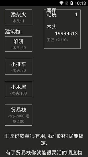 6、毛皮和木头要囤积起来,有人求助时多给一些,这样获利的机会会比亏损的可能性大。