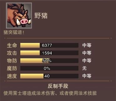 猛(萌)猪拥有50%物理抗性