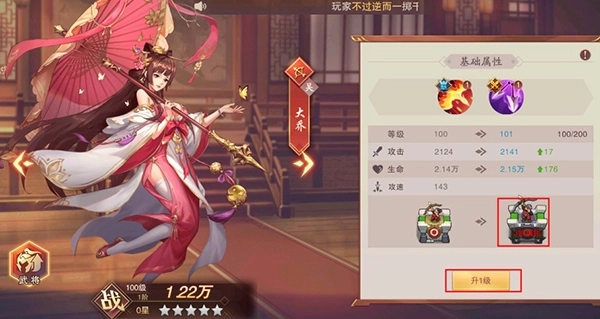 3、装备能够借助强化来提升属性,不过强化并非毫无限制,装备的等级不得高于主公的等级。